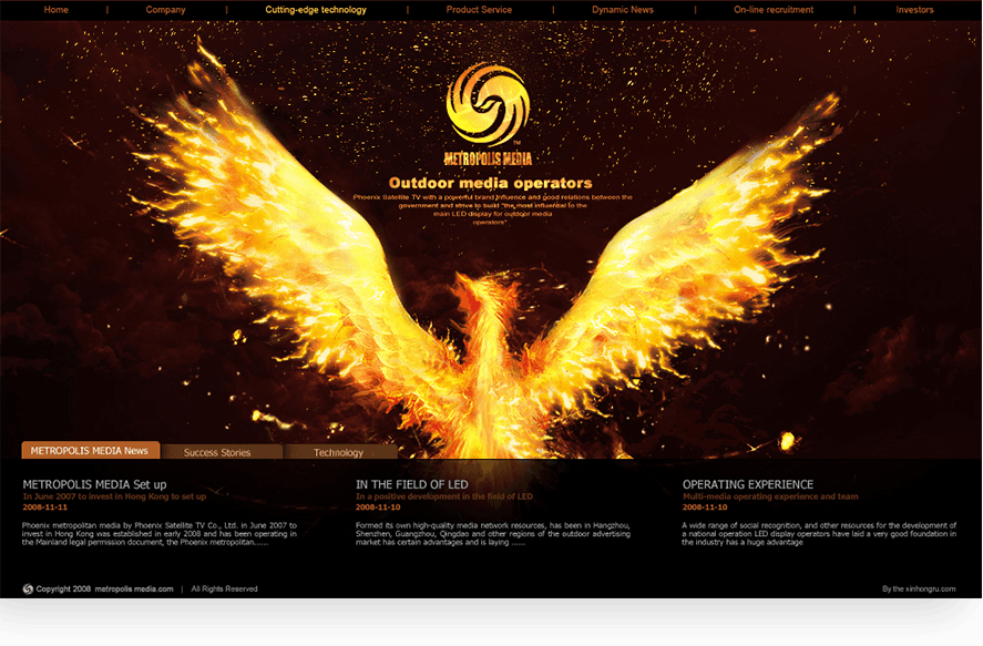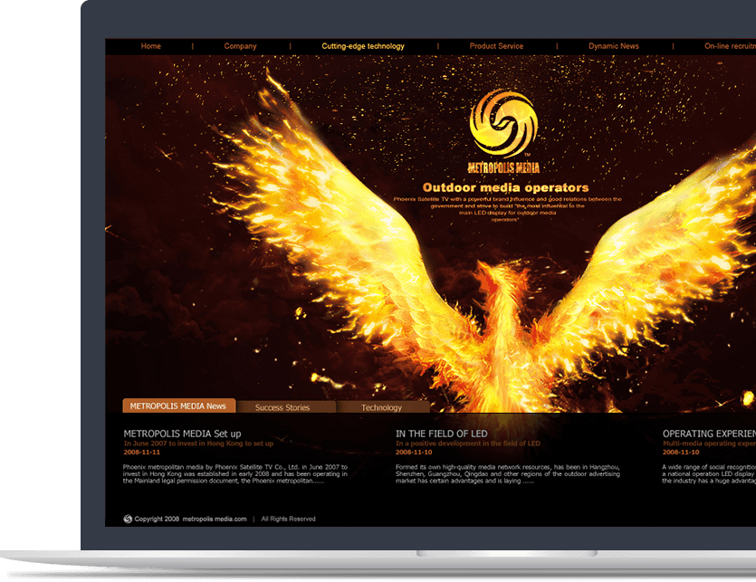 官網(wǎng)以鳳凰傳媒的標(biāo)志性圖標(biāo)和鳳凰圖案作為創(chuàng)意靈感,通過(guò)熾熱的火鳳凰表現(xiàn)鳳凰都市傳媒澎湃的新聞熱情和敢于承擔(dān)的社會(huì)責(zé)任。頁(yè)面視覺感官效果和鳳凰都市傳媒品牌調(diào)性高度吻合,成為鳳凰都市傳媒在互聯(lián)網(wǎng)領(lǐng)域閃亮的名片。