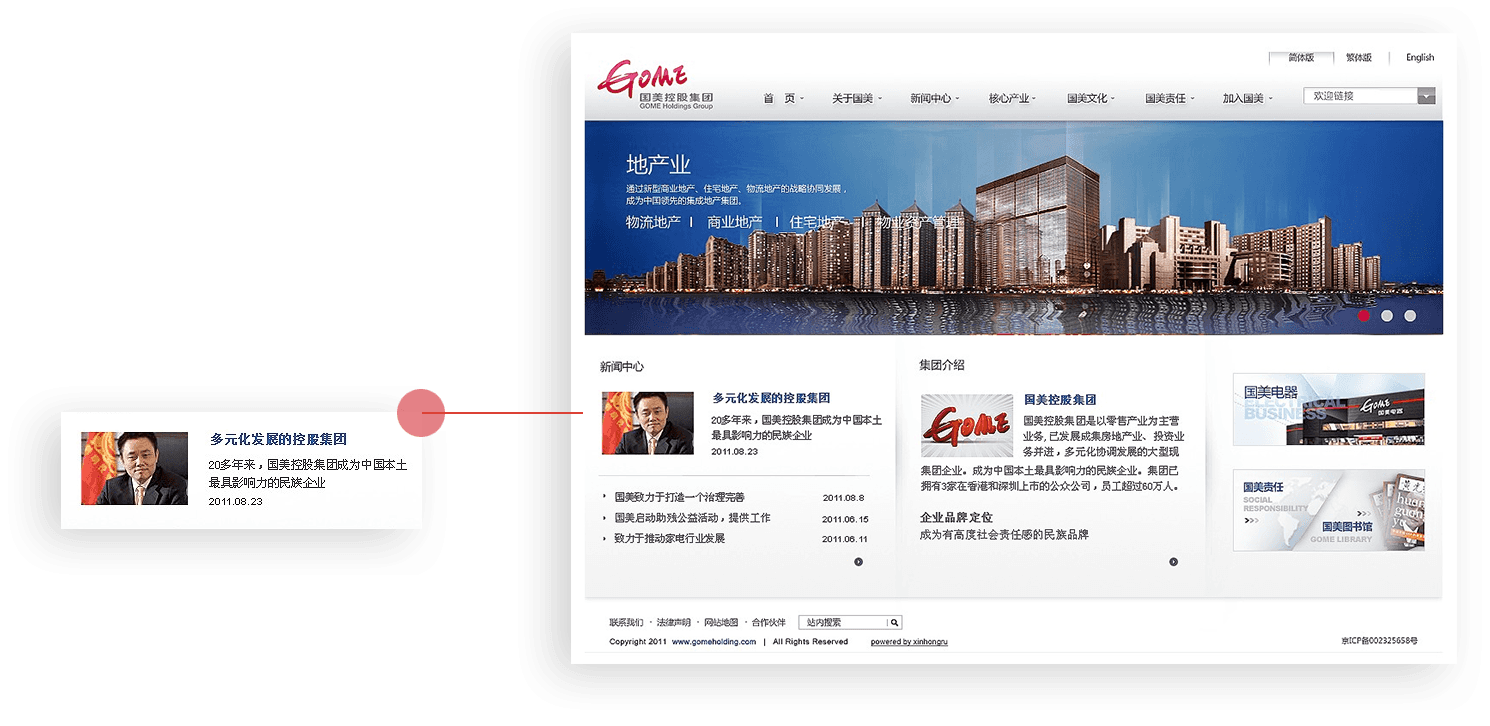 國美控股集團(tuán)官網(wǎng)集展示、互動、營銷于一體,全面配合國美集團(tuán)“用戶為王、產(chǎn)品為王、體驗(yàn)為王