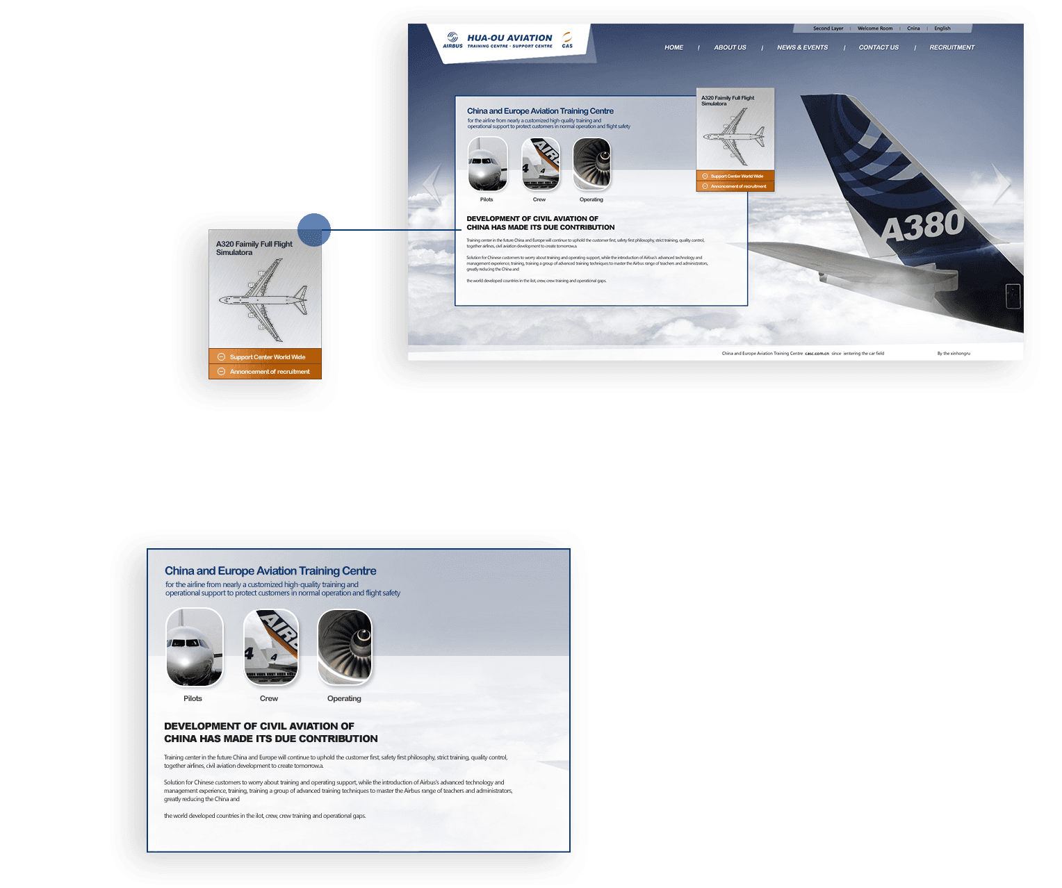 平臺(tái)以A380代表性圖片作為主視覺焦點(diǎn),有效傳達(dá)自身產(chǎn)品特征。并根據(jù)機(jī)長交流學(xué)習(xí)需求,定制開發(fā)平臺(tái)功能。