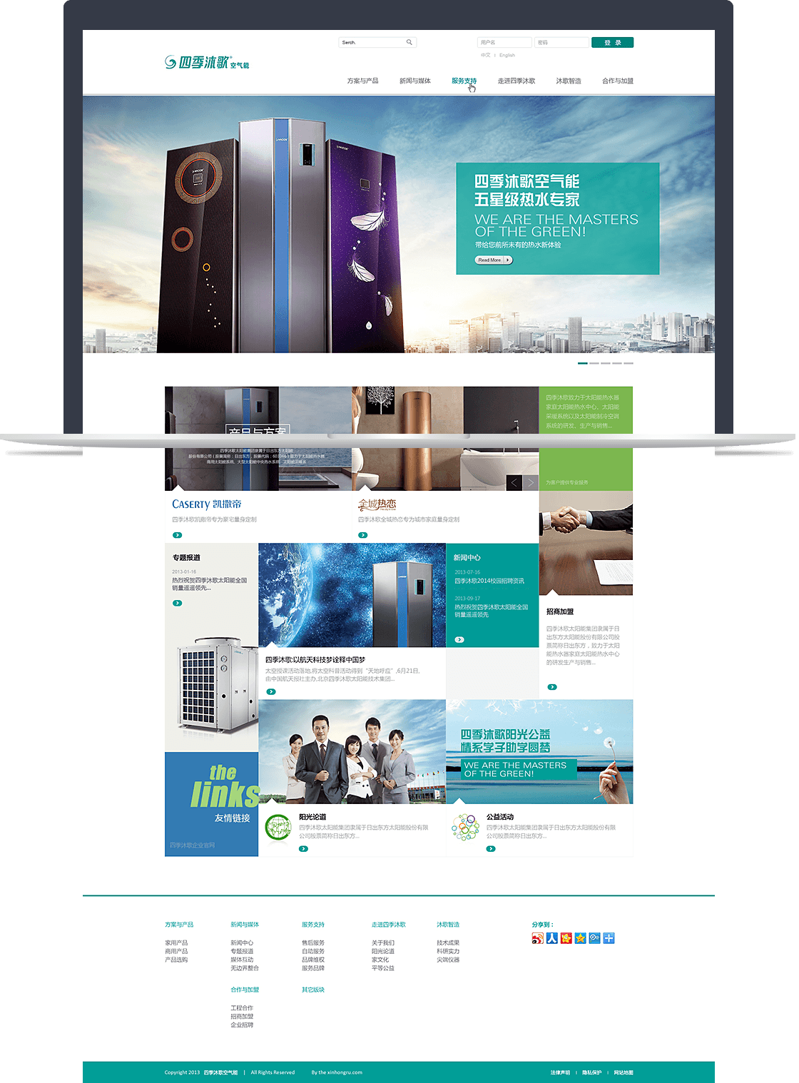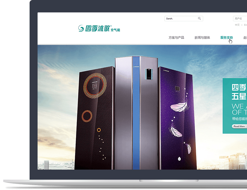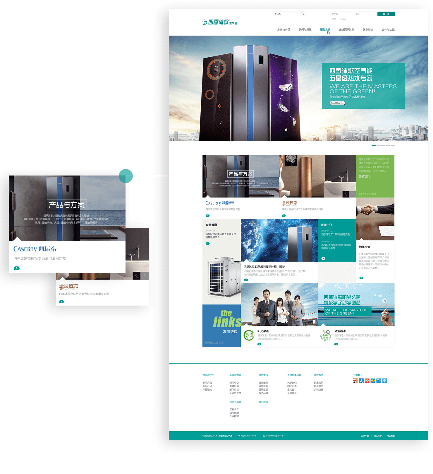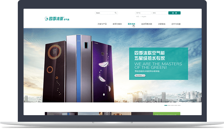 官網(wǎng)著力表現(xiàn)四季沐歌綠色能源產(chǎn)業(yè)的蓬勃朝氣和社會(huì)責(zé)任,呈現(xiàn)出科技感、現(xiàn)代感