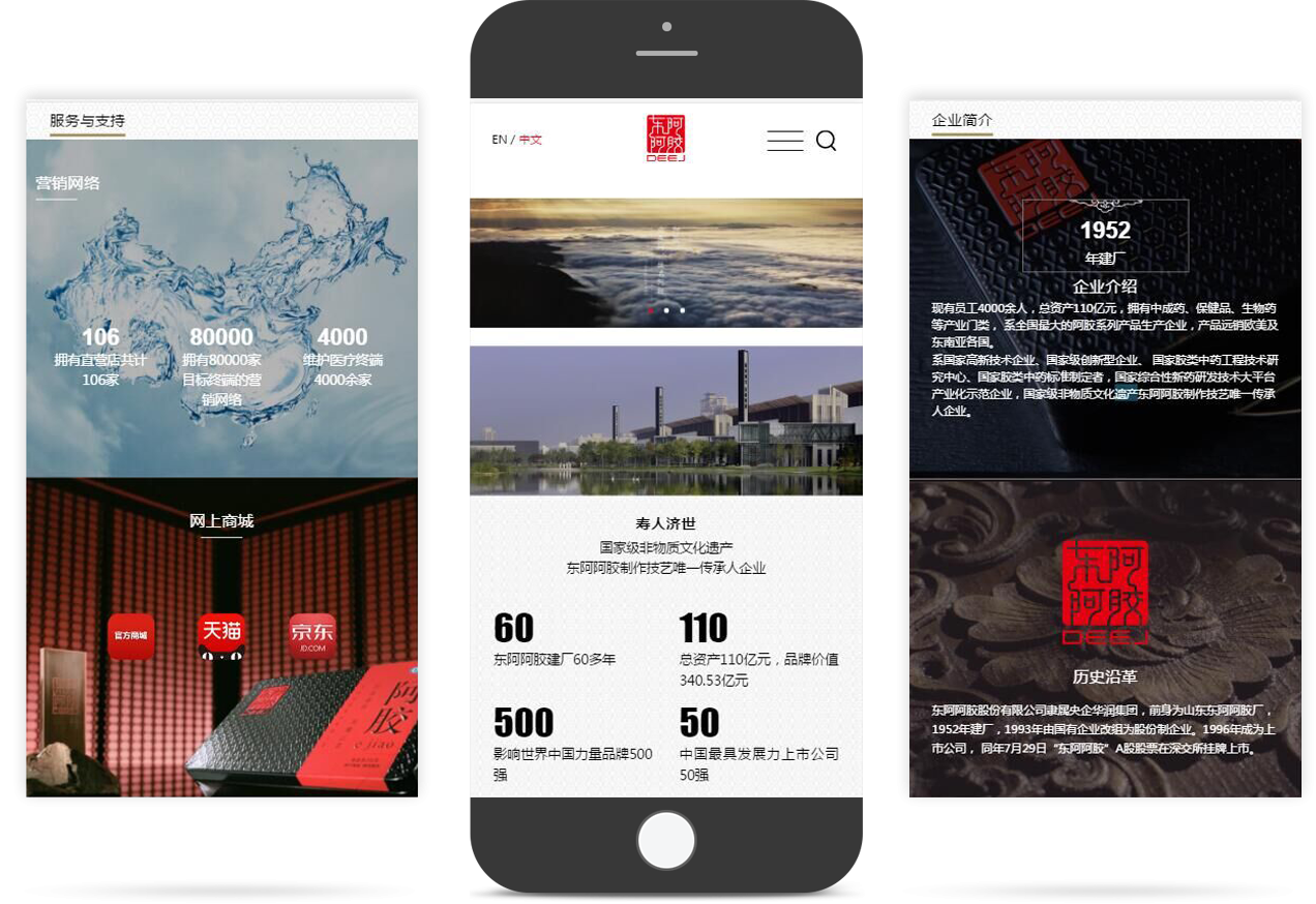 新官網(wǎng)大膽啟用具有沖擊力、戲劇性的創(chuàng)新設(shè)計(jì)手法,實(shí)現(xiàn)阿膠百年老