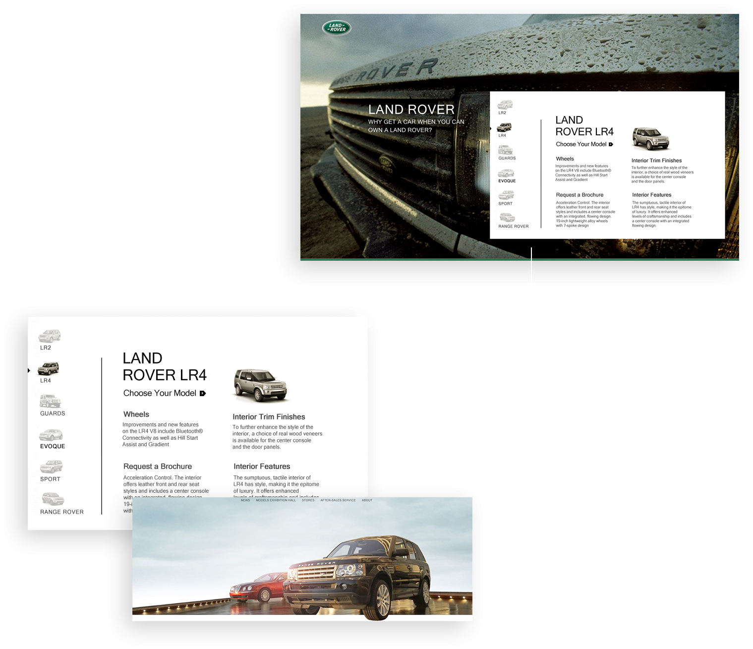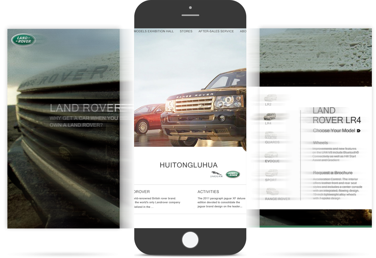網(wǎng)站在進行創(chuàng)意設(shè)計時著重表現(xiàn)路虎車的越野特性,高度契合路虎品牌及產(chǎn)品定位,傳遞路虎品牌內(nèi)涵。