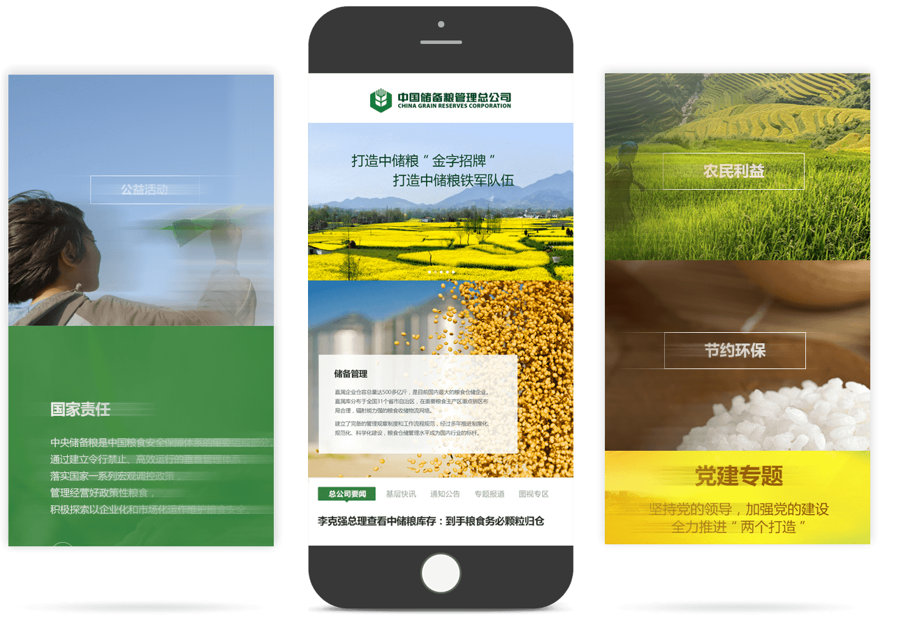 中儲(chǔ)糧官網(wǎng)采用扁平化ICON的方式,集中展示儲(chǔ)備管理、輪換購銷、專項(xiàng)調(diào)控等多元業(yè)務(wù),在保證用戶便于閱讀的基礎(chǔ)上,通過創(chuàng)意、交互吸引用戶關(guān)注。