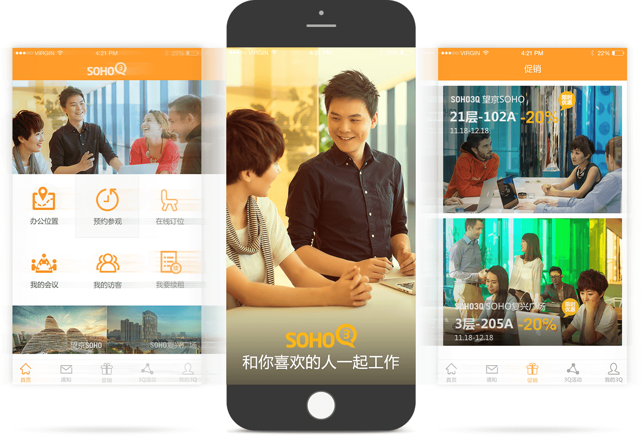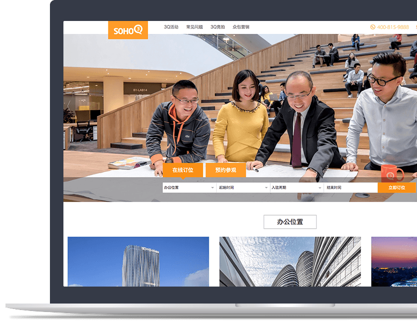 SOHO中國提供了一個現(xiàn)代化的共享辦公空間,并且面向短租、個性化租賃人群打造了自由、平等、多元的O2O電商服務平臺,不同行業(yè)、不同背景的人可以一起在線交流、碰撞、分享,用戶登錄官網(wǎng)即可完成自由選房、訂房、簽約、付款等完整的租賃流程。