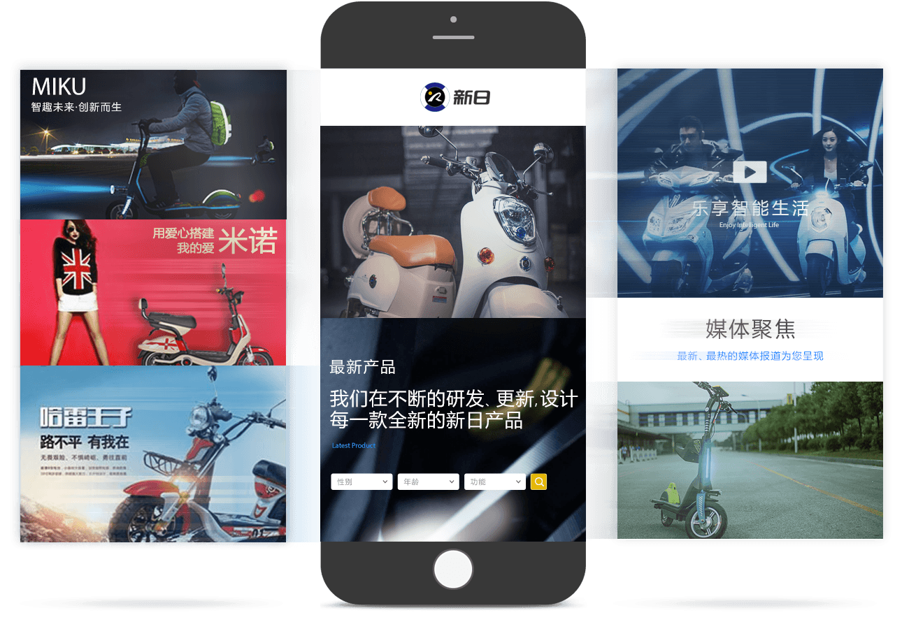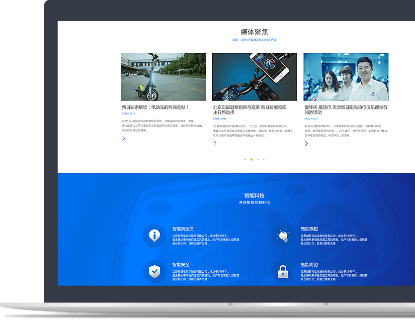 新日電動車官網(wǎng)以品牌為核心,以產品為基礎,通過JS/CSS3交互技術、全屏視頻等方式, 塑造企業(yè)創(chuàng)新、智能的品牌形象。