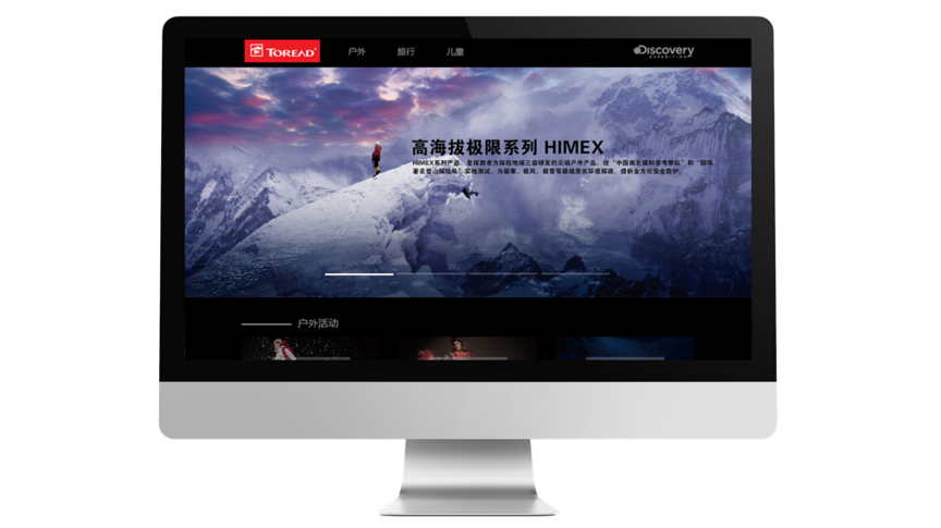 此次網(wǎng)站建設(shè)整體以黑色為基調(diào),再以明亮的配色造成視覺沖擊,突出探路者戶外運(yùn)動(dòng)品牌形象,貼合“為大眾提供戶外運(yùn)動(dòng)和體驗(yàn)式旅行的極致服務(wù),成為引領(lǐng)健康生活方式的社群生態(tài)組織”的企業(yè)愿景。