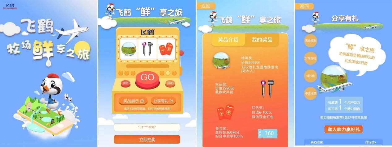 新鴻儒成立專屬項(xiàng)目小組,前端采用H5交互形式、后臺(tái)與內(nèi)部營(yíng)銷系統(tǒng)對(duì)接,實(shí)現(xiàn)線下購(gòu)買、線上互動(dòng)抽獎(jiǎng)的活動(dòng)形式,并且加入多種助力有獎(jiǎng)場(chǎng)景,促進(jìn)活動(dòng)傳播,本次活動(dòng),實(shí)現(xiàn)了線上、線下的營(yíng)銷閉環(huán),為飛鶴品牌影響力的提升和產(chǎn)品銷售的增長(zhǎng)提供了強(qiáng)大支撐。