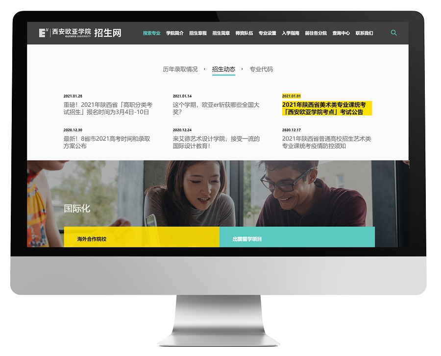 本次項目主要目的是通過對招生網站的升級,面對互聯網環(huán)境下成長的全新一代準大學生進行品牌宣傳,提升西安歐亞學院品牌形象、擴大品牌聲量、最終提升招生工作。新鴻儒服務西安歐亞學院已有11年,為數字化校園系統(tǒng)提供迭代更新、系統(tǒng)升級、各平臺系統(tǒng)的融合擴展工作,得到了院方各領導的高度認可與支持。