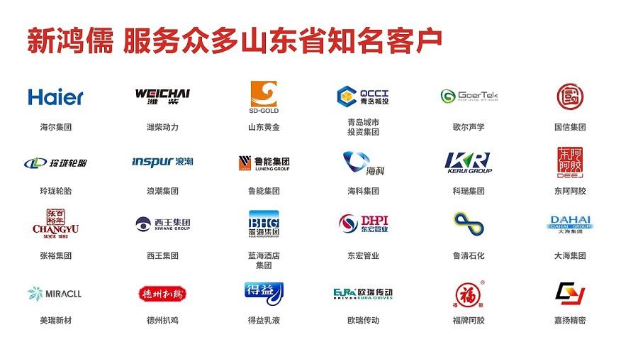 山東省一直是新鴻儒華東市場的重要區(qū)域,近年來新鴻儒先后服務(wù)于:海爾集團(tuán)、濰柴動力、山東黃金、青島城投集團(tuán)、歌爾股份、國信集團(tuán)、玲瓏輪胎、浪潮集團(tuán)、大海集團(tuán)、??萍瘓F(tuán)、魯能集團(tuán)、科銳集團(tuán)、東阿阿膠、東宏管業(yè)、張?jiān)<瘓F(tuán)、西王集團(tuán)、美瑞新材等多家山東省知名企業(yè),在山東地區(qū)已經(jīng)積累了良好的品牌口碑,為進(jìn)一步拓展山東市場份額,加速市場競爭戰(zhàn)略進(jìn)程,成立山東分公司是新鴻儒內(nèi)部與山東市場的共同訴求。