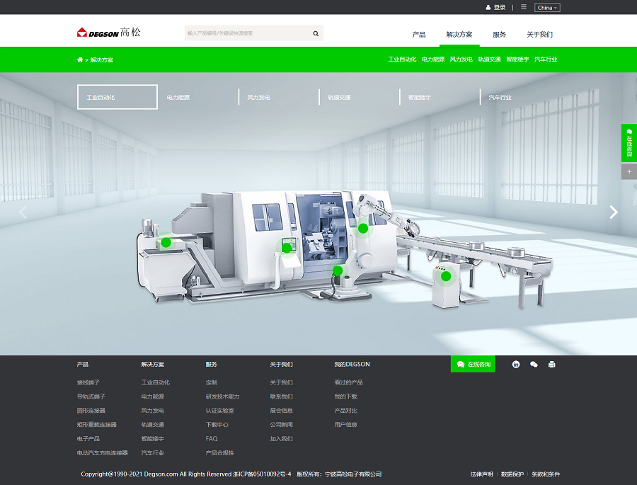 網(wǎng)站的首頁設(shè)計,是企業(yè)品牌官網(wǎng)的核心,項(xiàng)目實(shí)施初期新鴻儒項(xiàng)目組與寧波高松領(lǐng)導(dǎo)團(tuán)隊(duì)展開深入溝通交流,充分調(diào)研網(wǎng)站受眾人群的使用習(xí)慣及高松電子企業(yè)文化理念。首頁整體布局設(shè)計充分考慮訪問者需求,重點(diǎn)展示高松產(chǎn)品及解決方案,讓用戶一目了然,快速獲取所需信息;設(shè)計風(fēng)格上,加入目前主流的扁平化設(shè)計元素,融入高松電子品牌理念,以產(chǎn)品及解決方案場景圖片作為引導(dǎo),突出高松在全球市場領(lǐng)先的行業(yè)定位。并且充分考慮多終端適配瀏覽,滿足網(wǎng)站的跨終端訪問。