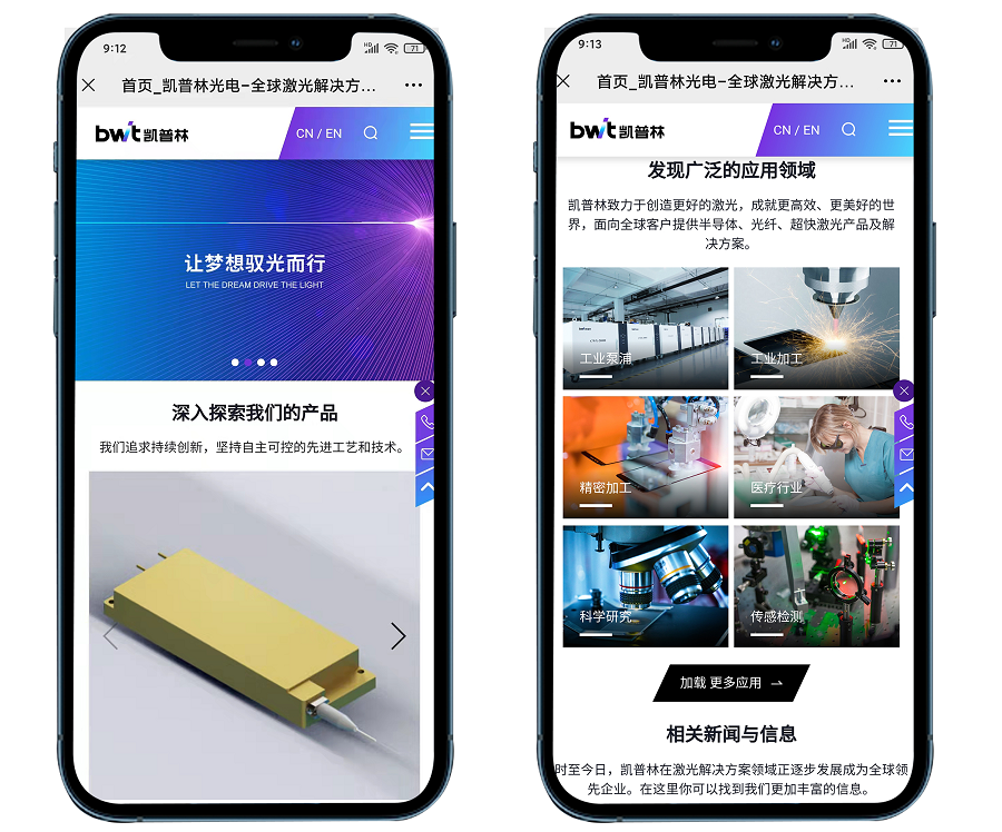 近日,由新鴻儒打造的凱普林光電官網(wǎng)平臺(tái)正式上線,以全新的互聯(lián)網(wǎng)形象對(duì)公眾展示,網(wǎng)址為:www.bwt-bj.com